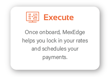 MexEdge provides access to the tools you need to lock in your future payment rates. Our simple 3 step process can take as little as one week from start to finish.